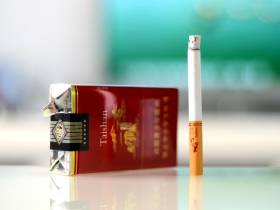 泰山(宏图)秉承泰山品牌气势宏大的品牌精神,以大红色调的包装设计,凸现热情洋溢的风格,体现人们追求喜庆、热烈的传统审美,寄托人们对未来生活、事业的美好祝愿。 包装规格使用“软包硬化”工艺,进口横纹盘纸,生物制剂技术加工嘴棒的应用,有效改善口感,降低危害。